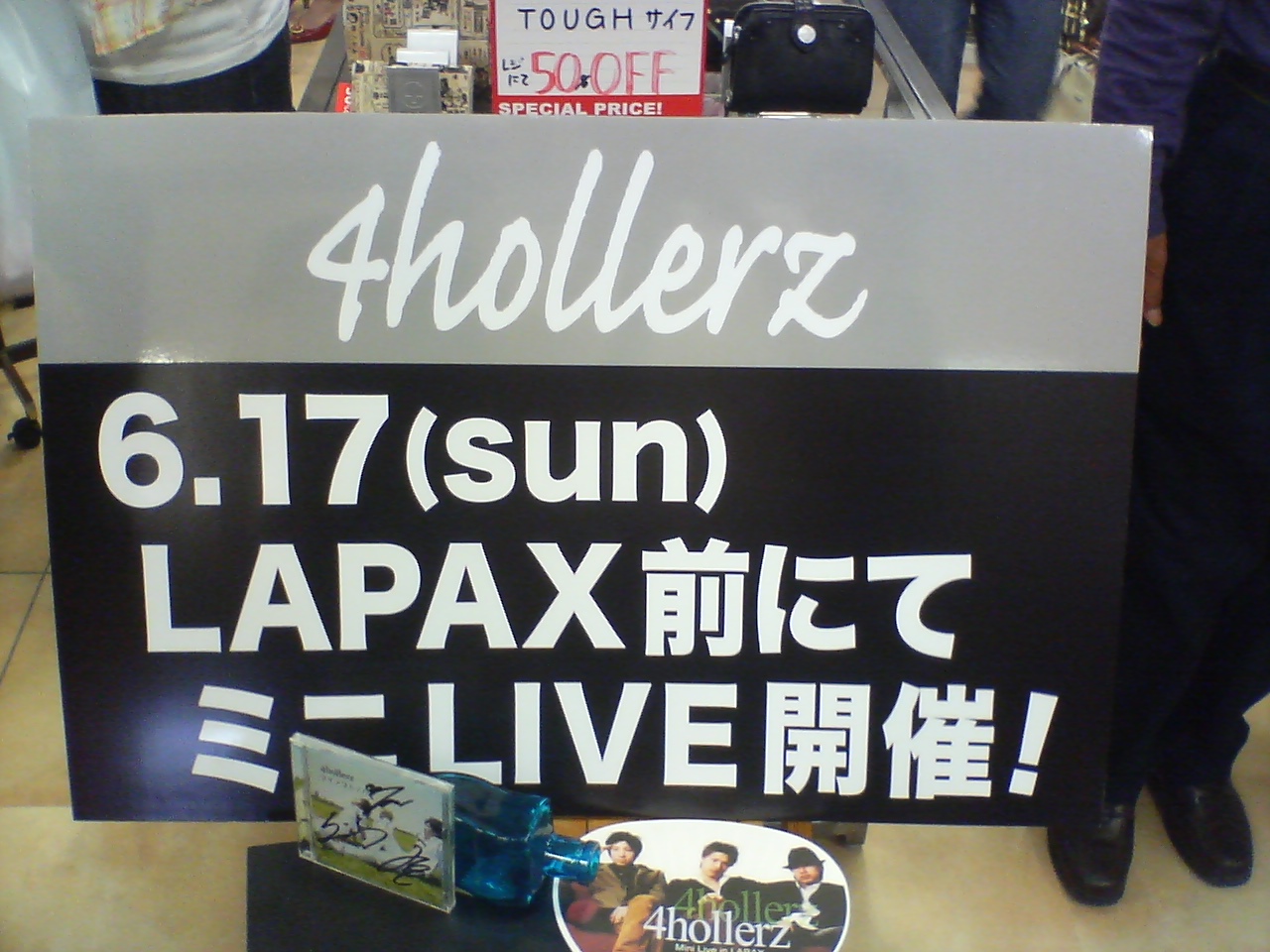 看板や、、CDもかけて下さっていて一番ビクリしたのは「うちわ」ですね〜、4hollerzうちわ☆「LAPAXの店長さんと奥さん?」もペパーミントにも足を運んで頂きまして本当にありがとうございます。