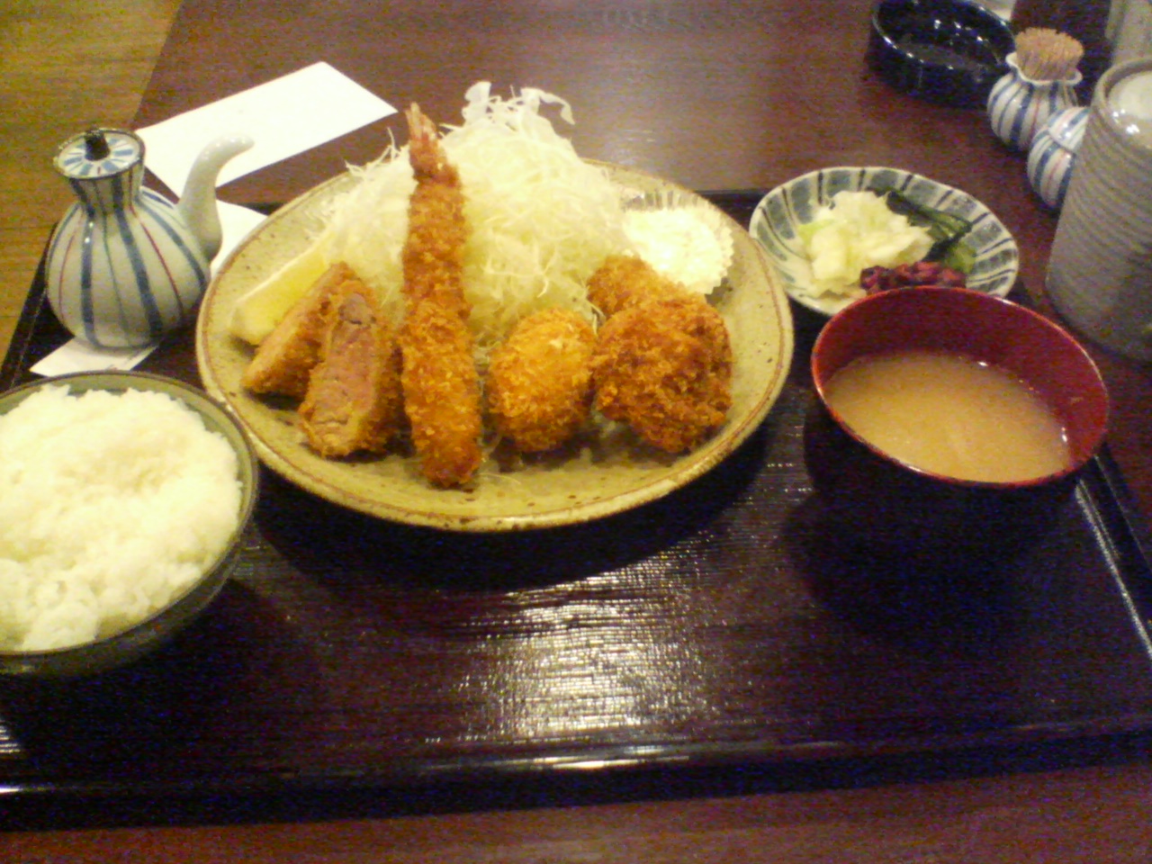 エビ、ホタテ、ヒレ、クリームコロッケ、奥にはもちろん伝票。