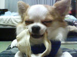 「犬用の骨をかじりながら‥…、うたた寝してます。」
